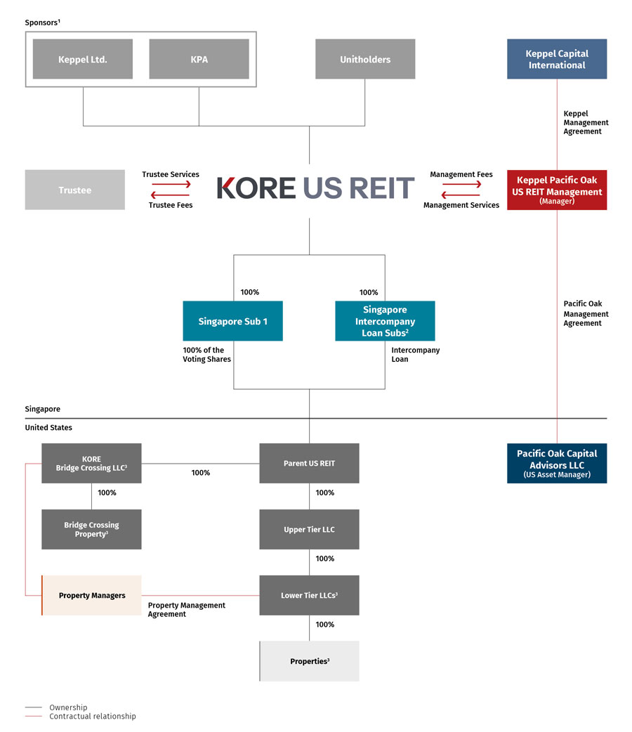 (1) Keppel Ltd., through Keppel Capital International holds a deemed 7.2% stake in KORE US REIT. Pacific Oak Strategic Opportunity REIT, Inc. (KPA entity) holds a 6.2% stake in KORE. KPA holds a deemed interest of 1.0% in KORE, for a total of 7.2%.